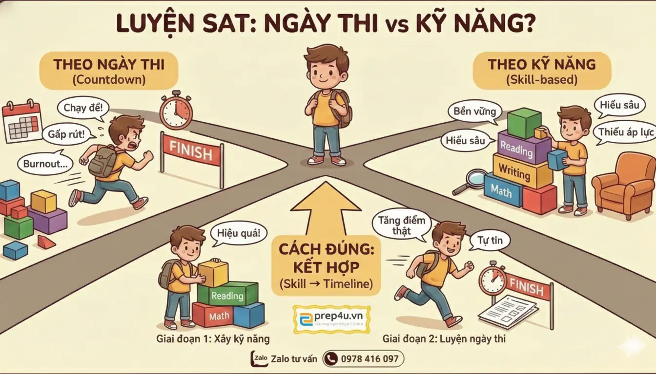 Nên học SAT theo lộ trình hay luyện đề sớm? Bài viết giúp bạn hiểu khi nào mỗi cách là đúng, và khi nào là quyết định sai.