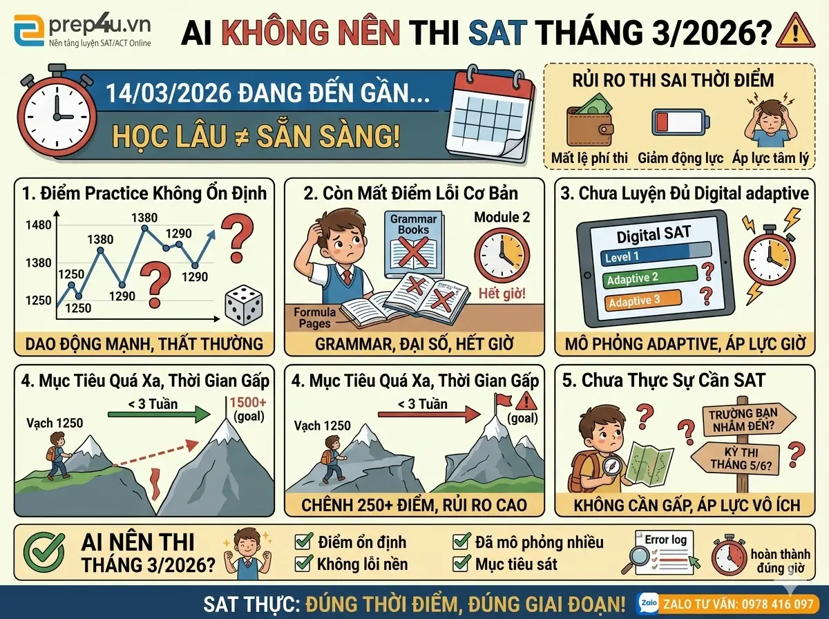 Hướng dẫn đầy đủ về SAT Digital 2026 cho học sinh Việt Nam: SAT là gì, cấu trúc đề, cách tính điểm, lịch thi và chiến lược luyện đúng.