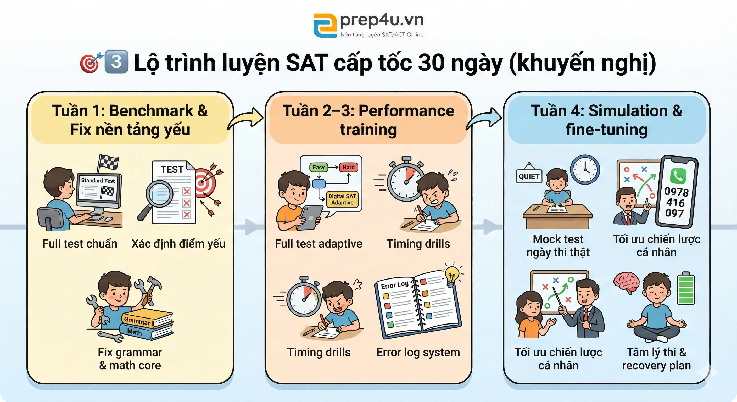 30 ngày trước SAT là giai đoạn chuyển đổi từ học → thi.