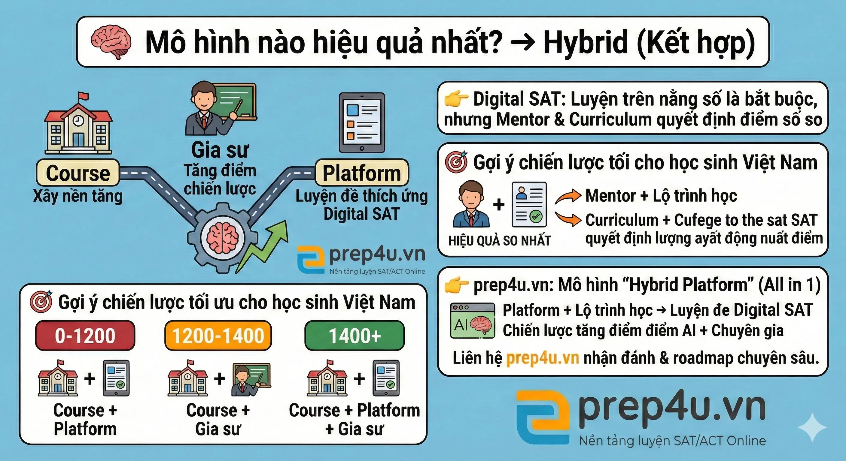 👉 Trong bối cảnh Digital SAT, luyện trên nền tảng số là bắt buộc, nhưng mentor và curriculum vẫn là yếu tố quyết định điểm số cao.