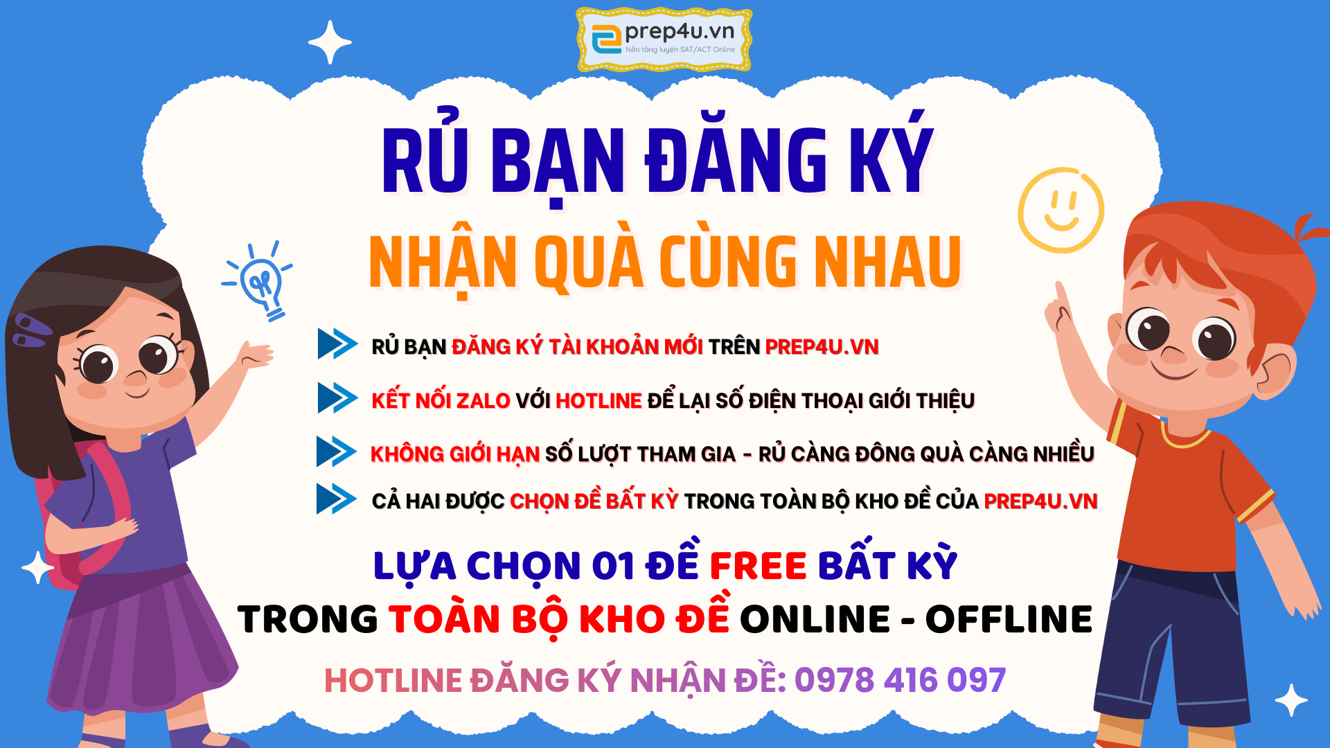Nhận ngay quà tặng độc quyền khi rủ bạn đăng ký Prep4u! Cơ hội vàng để luyện thi SAT Digital cùng bạn bè, tăng động lực – nhận thưởng thật.