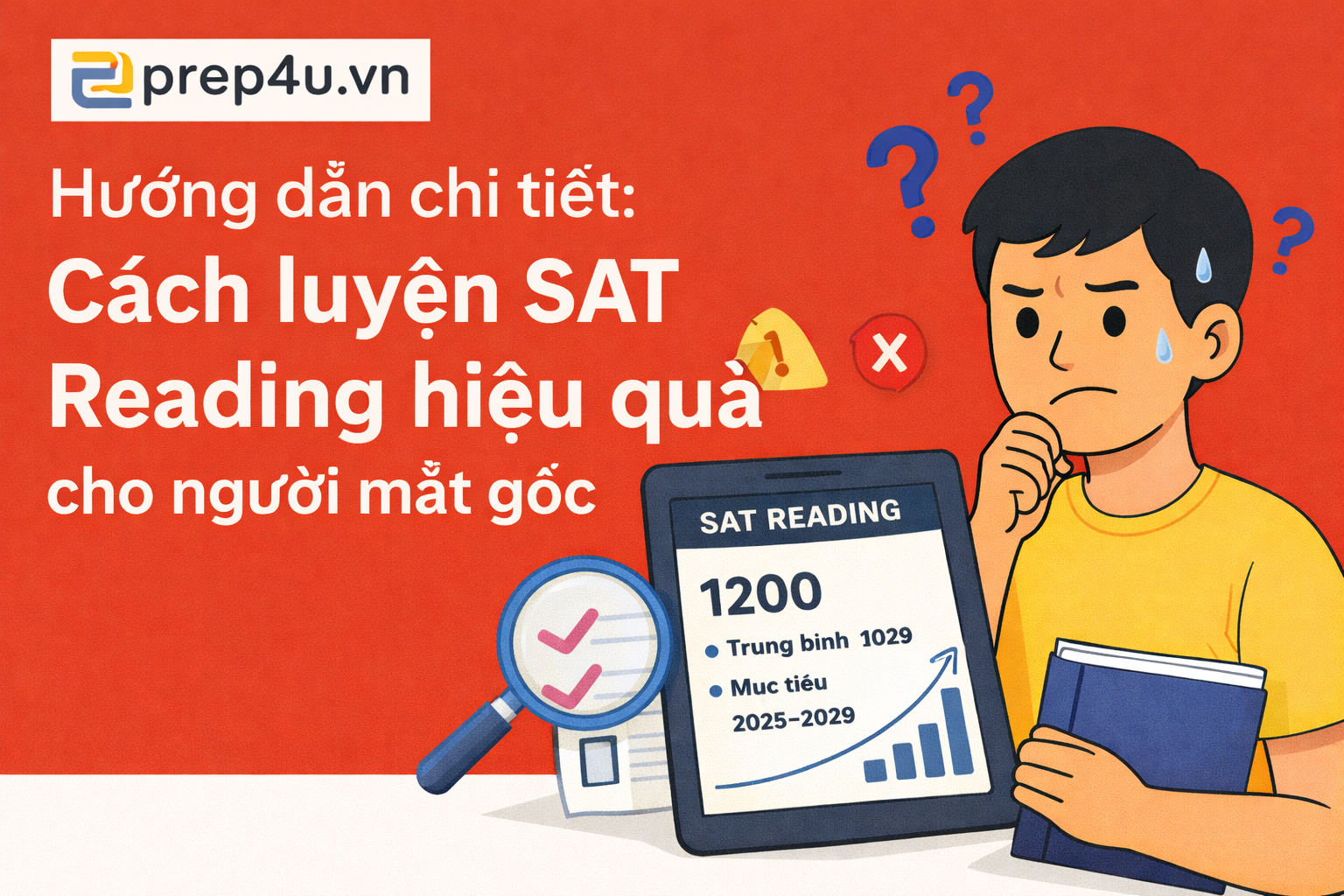 Hướng dẫn chi tiết cách luyện SAT Reading cho người mất gốc: lộ trình học từ đầu, chiến lược đọc hiểu và luyện Digital SAT hiệu quả 2025–2026.
