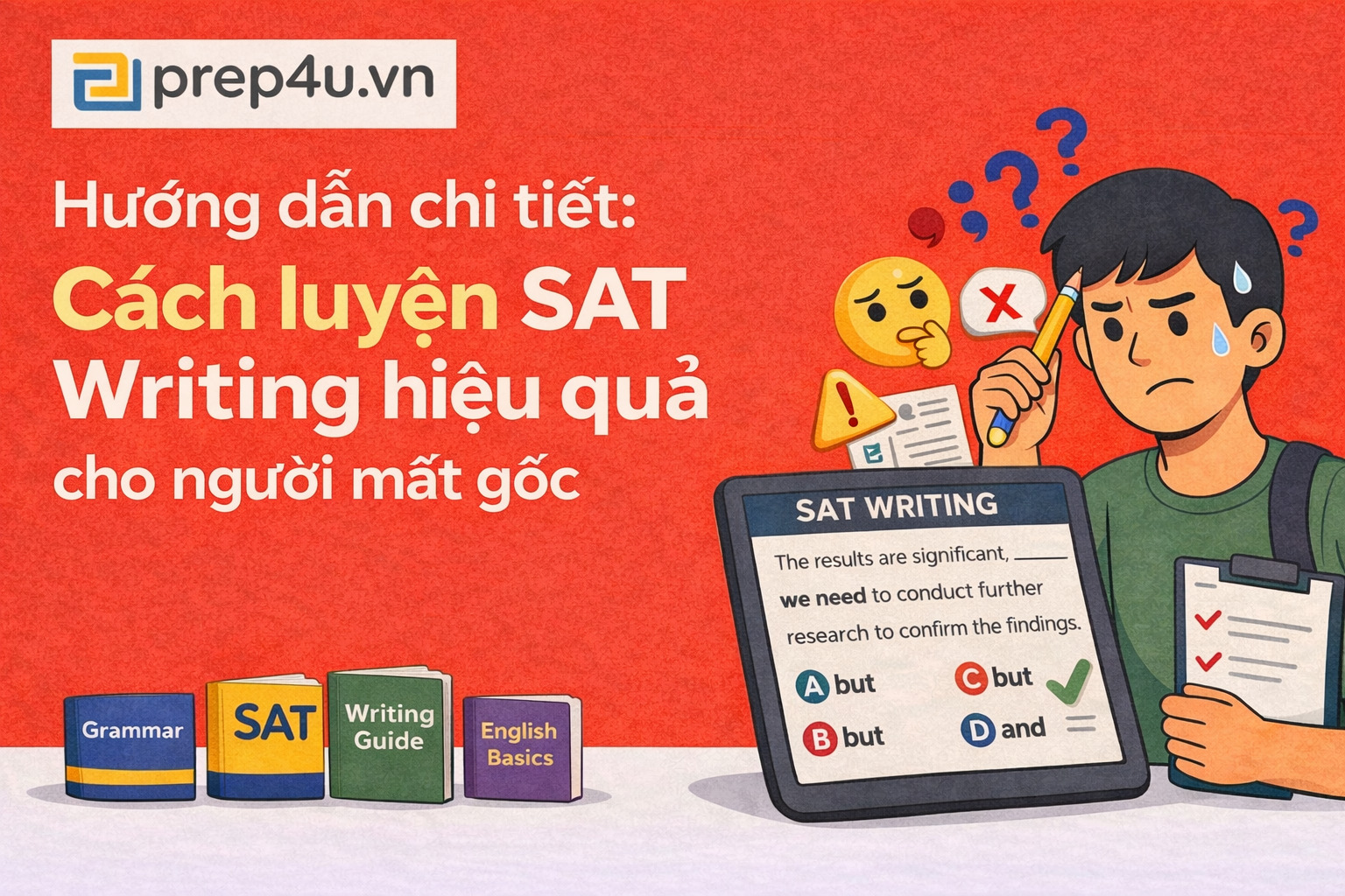 Hướng dẫn luyện SAT Writing cho người mất gốc: lộ trình học từ đầu, các dạng câu quan trọng và cách luyện Digital SAT hiệu quả 2025–2026.